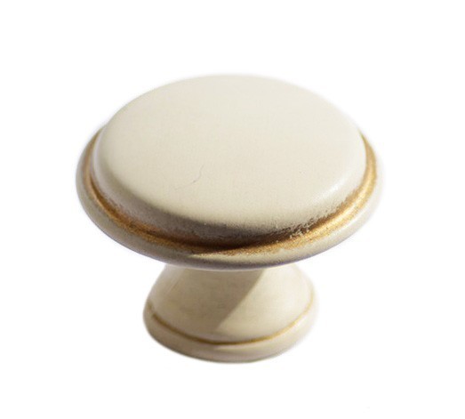 Ручка кнопка WPO.6000.030.00V5, материал Замак, отделка Слоновая кость Золото Золотая патина, 21*d=29,5 мм
